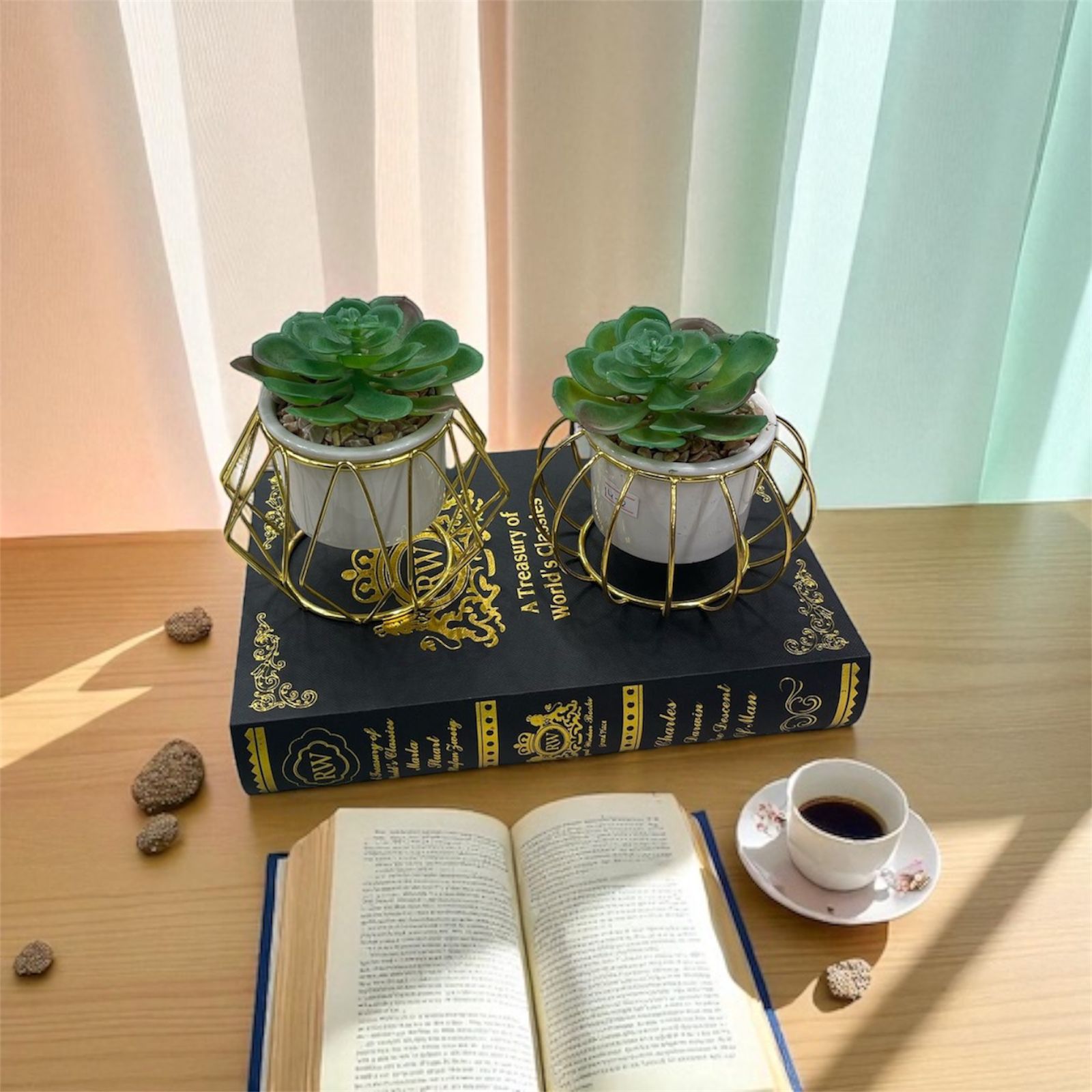 Bring a touch of timeless elegance and modern charm to your home or office with our Luxury Succulent Plant Pots. Featuring a sleek white ceramic planter enclosed in a golden geometric cage stand, these miniature masterpieces are the perfect fusion of nature and style.