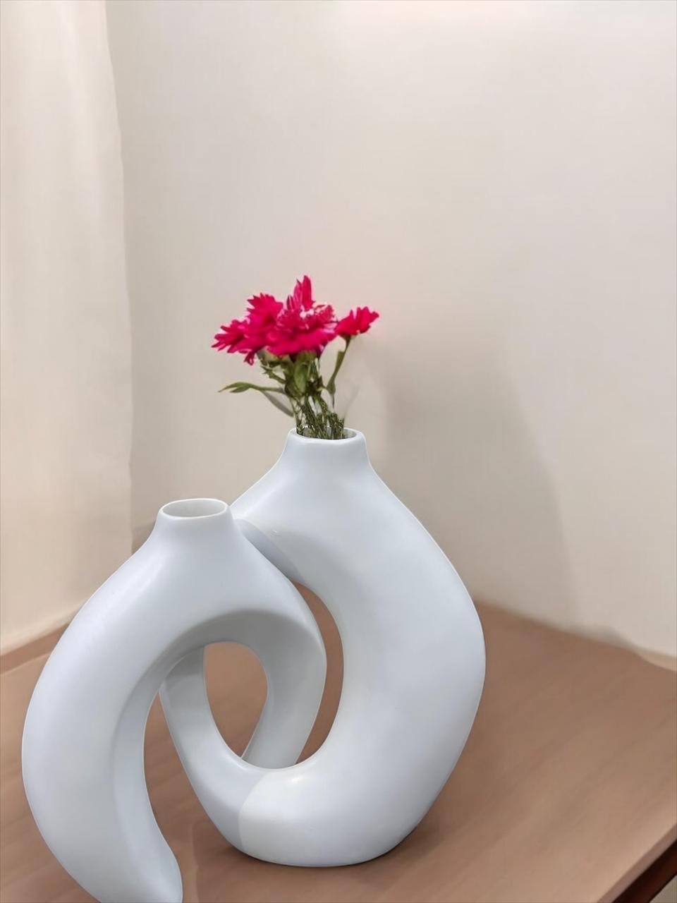 Elevate your home with elegance and creativity through this Sculptural Ceramic Vase, a true statement piece that blends modern art with everyday function. Designed with fluid, intertwining curves and a matte white finish, this vase brings a calming and sophisticated presence to any space.